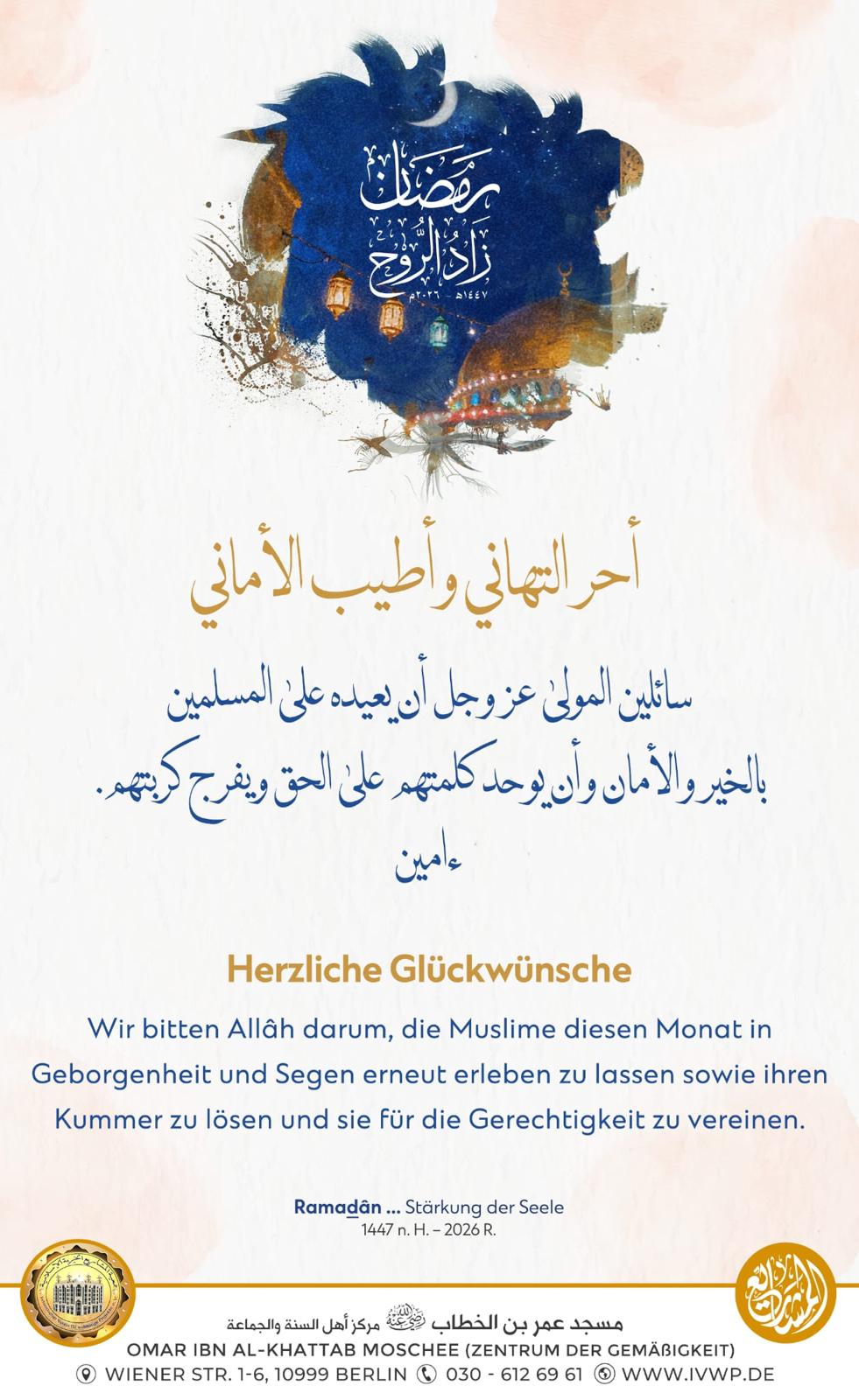 Der Monat Ramadân und sein Segen stehen uns bevor und die Muslime sehnen sich nach seinen Tagen. O Allâh, wir bitten Dich, uns diesen gesegneten Monat erleben zu lassen und uns Kraft zu geben, die Handlungen zu verrichten, die Du liebst. …